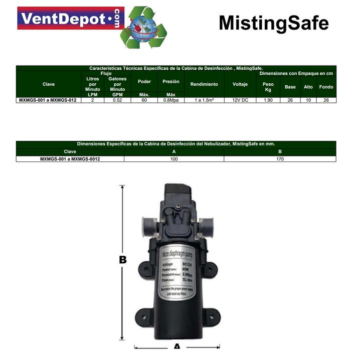 | Las Cabinas de Desinfección MistingSafe, tiene una garantía de un año, sujeto a cláusulas VentDepot. | |||