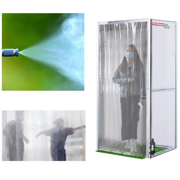 | En VentDepot, ya contamos con la Cabina de Desinfección, MistingSafe. Son Cabinas Diseñadas para una Desinfección Total de una persona, en todo el cuerpo ya sea por bacterias o virus en el medio ambiente que pueden resultar peligrosos para el ser humano. Ya que no solo están en las manos si no en las prendas que usamos día a día. Esto minimiza riesgos de contagio o enfermedades. Creadas en Acrílico o Policarbonato transparente, con estructura de aluminio. Son de Fácil Instalación sin necesidad de utilizar herramientas. Trabaja por medio de un Nebulizador de baja presión que es a base de mangueras Distribuidas en la parte superior inferior y laterales de la cabina por medio de boquillas. La entrada cuenta con Cortina Hawaiana para una densidad mayor de la Nebulización esto hace más efectiva la desinfección. Diseñada para el paso de 3 personas por minuto. Se requiere un Sanitizante Médico que no contiene ningún químico invasivo o peligroso, ya que es un desinfectante potenciado con esencias naturales con propiedades antivirales. El Kit Incluye señalamiento de uso de cubrebocas, tornillería de armado, alfombra, cinchos, sanitizante médico de 1L y soporte para nebulizador. La cabina viene desarmada lista para instalarse. Viene con nuestro sanitizante concentrado VirusCOP de 1 ó 2L, el cual tiene un rendimiento 1/ 20 es decir, (1L de Sanitizante es para 20 L y 2L para 40L de agua respectivamente incluye bidón de 20 o 40L para diluirlo con agua). Esta cabina requiere un depósito o toma directa de agua para trabajar. | |||