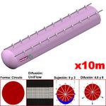 AirRegularFlow es fácil de instalar, genera poco trabajo en los proyectos junto con muchas ventajas, cada Ducto Textil AirRegularFlow es único y se diseña en particular para responder de manera óptima a las necesidades del proyecto, por esto se puede decir que cada AirRegularFlow es un traje de sastre a la medida, soporta una temperatura de -10°C a 60°C, su difusión UniFlow permite la difusión del aire en los 360° del perímetro del Ducto debido a la permeabilidad de la fibra textil, con Venda Difusora de mediano alcance, con Tiros de 1m a 6m del Ducto en zonas donde no se desea tener una percepción directa de aire pero si un espacio confortable.