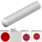 AirRegularPerma es fácil de instalar, genera poco trabajo en los proyectos junto con muchas ventajas, cada Ducto Textil AirRegularPerma es único y se diseña en particular para responder de manera óptima a las necesidades del proyecto, por esto se puede decir que cada AirRegularPerma es un traje de sastre a la medida, soporta una temperatura de -10°C a 60°C, su difusión PermaFlow permite la difusión del aire en los 360° del perímetro del ducto debido a la permeabilidad de la fibra textil, el aire penetra por la superficie de la tela del ducto, con venda difusora de corto alcance, tiros de entre 0 y 1m, en zonas donde no se desea tener una percepción directa de aire pero si, un espacio confortable.