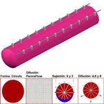 AirRegularPerma es fácil de instalar, genera poco trabajo en los proyectos junto con muchas ventajas, cada Ducto Textil AirRegularPerma es único y se diseña en particular para responder de manera óptima a las necesidades del proyecto, por esto se puede decir que cada AirRegularPerma es un traje de sastre a la medida, soporta una temperatura de -10°C a 60°C, su difusión PermaFlow permite la difusión del aire en los 360° del perímetro del ducto debido a la permeabilidad de la fibra textil, el aire penetra por la superficie de la tela del ducto, con venda difusora de corto alcance, tiros de entre 0 y 1m, en zonas donde no se desea tener una percepción directa de aire pero si, un espacio confortable.