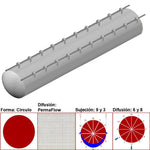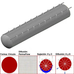 AirRegularPerma es fácil de instalar, genera poco trabajo en los proyectos junto con muchas ventajas, cada Ducto Textil AirRegularPerma es único y se diseña en particular para responder de manera óptima a las necesidades del proyecto, por esto se puede decir que cada AirRegularPerma es un traje de sastre a la medida, soporta una temperatura de -10°C a 60°C, su difusión PermaFlow permite la difusión del aire en los 360° del perímetro del ducto debido a la permeabilidad de la fibra textil, el aire penetra por la superficie de la tela del ducto, con venda difusora de corto alcance, tiros de entre 0 y 1m, en zonas donde no se desea tener una percepción directa de aire pero si, un espacio confortable.