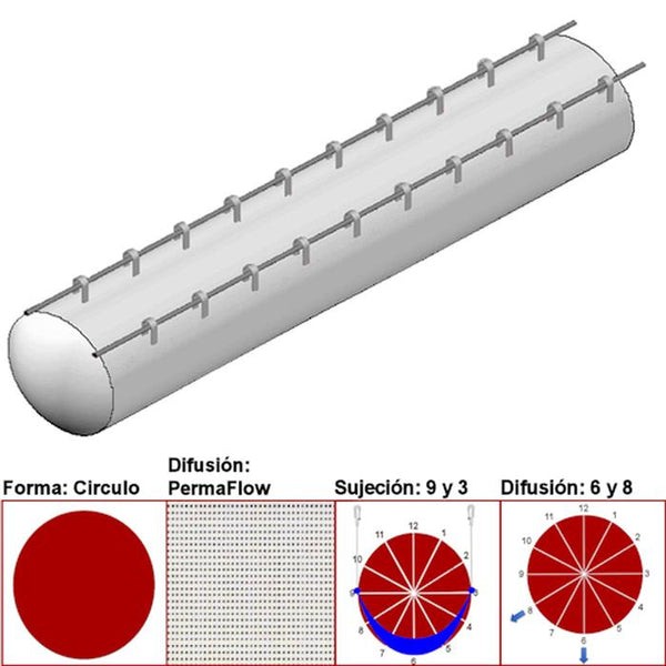 AirRegularPerma es fácil de instalar, genera poco trabajo en los proyectos junto con muchas ventajas, cada Ducto Textil AirRegularPerma es único y se diseña en particular para responder de manera óptima a las necesidades del proyecto, por esto se puede decir que cada AirRegularPerma es un traje de sastre a la medida, soporta una temperatura de -10°C a 60°C, su difusión PermaFlow permite la difusión del aire en los 360° del perímetro del ducto debido a la permeabilidad de la fibra textil, el aire penetra por la superficie de la tela del ducto, con venda difusora de corto alcance, tiros de entre 0 y 1m, en zonas donde no se desea tener una percepción directa de aire pero si, un espacio confortable.
