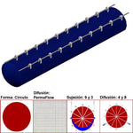 AirRegularPerma es fácil de instalar, genera poco trabajo en los proyectos junto con muchas ventajas, cada Ducto Textil AirRegularPerma es único y se diseña en particular para responder de manera óptima a las necesidades del proyecto, por esto se puede decir que cada AirRegularPerma es un traje de sastre a la medida, soporta una temperatura de -10°C a 60°C, su difusión PermaFlow permite la difusión del aire en los 360° del perímetro del ducto debido a la permeabilidad de la fibra textil, el aire penetra por la superficie de la tela del ducto, con venda difusora de corto alcance, tiros de entre 0 y 1m, en zonas donde no se desea tener una percepción directa de aire pero si, un espacio confortable.