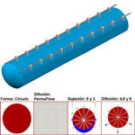 AirRegularPerma es fácil de instalar, genera poco trabajo en los proyectos junto con muchas ventajas, cada Ducto Textil AirRegularPerma es único y se diseña en particular para responder de manera óptima a las necesidades del proyecto, por esto se puede decir que cada AirRegularPerma es un traje de sastre a la medida, soporta una temperatura de -10°C a 60°C, su difusión PermaFlow permite la difusión del aire en los 360° del perímetro del ducto debido a la permeabilidad de la fibra textil, el aire penetra por la superficie de la tela del ducto, con venda difusora de corto alcance, tiros de entre 0 y 1m, en zonas donde no se desea tener una percepción directa de aire pero si, un espacio confortable.