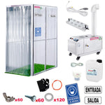 | En VentDepot, ya contamos con la línea de Túneles de Desinfección, SonicSafe. Es un Túnel diseñado para una desinfección total de una persona, en todo el cuerpo ya sea por bacterias o virus en el medio ambiente que pueden resultar peligrosos para el ser humano. Ya que no solo están en las manos si no en las prendas que usamos día a día. Esto minimiza riesgos de contagio o enfermedades. Creadas en Acrílico o Policarbonato transparente de 1 x 2.2 x 2m de 6mm de espesor, con estructura de Perfiles de lámina galvanizada de C 20. Son de Fácil Instalación sin necesidad de utilizar herramientas. Trabaja por medio de un Humidificador Ultrasónico de 1 salida, es de Acero Inoxidable 304, con rudas 360° para una fácil transportación, tiene 10 cabezas ultrasónicas, depósito de agua ya sea llenado con garrafón de 20L o 40L o bien a la toma de agua directa, cuenta con botón de encendido y Humidistato para programar automáticamente su funcionamiento y regulador de flujo de vapor. El equipo va conectado mediante tubería PVC 110mm a un costado de la cabina. La entrada cuenta con 2 Cortina Hawaiana para una densidad mayor de Humidificación esto hace más efectiva la desinfección. Diseñada para el paso de 6 personas por minuto. El Kit Incluye señalamiento de uso de cubrebocas, tornillería de armado, alfombra, tubería y sanitizante médico de 1L. La Túnel viene desarmada lista para instalarse. Viene con nuestro sanitizante concentrado VirusCOP de 1 ó 2L, el cual tiene un rendimiento 1/ 20 es decir, (1L de Sanitizante es para 20 L y 2L para 40L de agua respectivamente incluye bidón de 20 ó 40L para diluirlo con agua). Este equipo cuenta con deposito propio con adaptación de garrafón y conexión directa a toma de agua. El Humidificador es resistente a cualquier sanitizante que no corroa el acero inoxidable 304. | |||