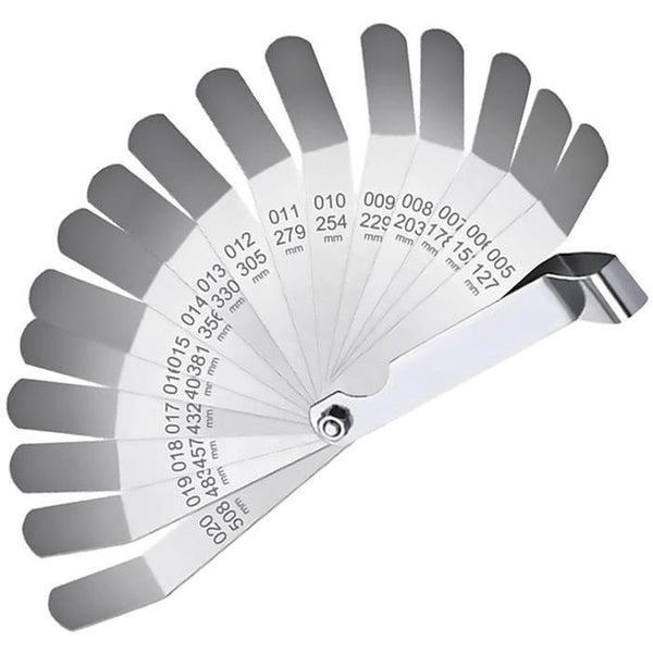 | Los Calibradores de Espesor PreciseGap, se utilizan para medir holguras, espacios estrechos o ajustes entre piezas de forma confiable. Cuenta con 16 hojas de medición desde 0.005 pulgadas (0.127mm) hasta 0.020 pulgadas (0.508mm), abarcando una gran variedad de espesores para elegir exactamente la lámina que se necesite, permitiendo un ajuste fino, ahorro de tiempo, compatibilidad con diferentes normas, es ideal para trabajos de precisión. Las medidas están grabadas en cada hoja por lo que permanecerán legibles. Es de un tamaño compacto y cómodo, por su diseño tipo abanico plegable con un doblez al final de cada hoja es fácil de transportar, se puede llevar en una caja de herramientas, mochilas o incluso en los bolsillos. Se asegura mediante una tuerca y tornillo en la parte inferior, para utilizar con mayor control y comodidad, permite desplegar una o varias hojas, estas pueden superponerse para obtener un espesor personalizado además de poder retirar las hojas y ordenarlas según sus necesidades. Su funda de plástico agrega protección extra para mantener el calibrador en condiciones óptimas. Elaborados en acero inoxidable, son resistentes y duraderos, al cuidarlos adecuadamente y mantenerlos en ambientes sin humedad mantienen su precisión, asegurando una larga vida útil. | |||