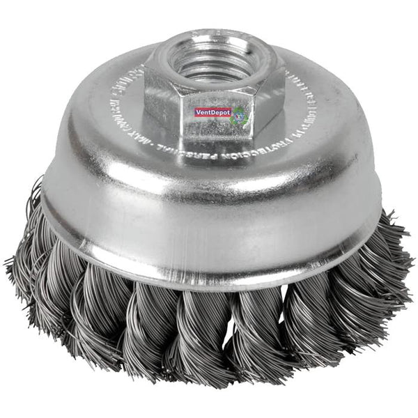 | Las Cardas de Copa Trenzada BraidedCard son de uso comercial e industrial. Limpian placas metálicas, armazones, metálicos, astilleros, óxidos, pinturas, y adherencias en general. | |||