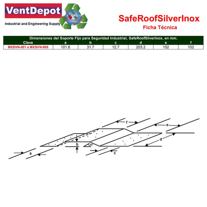 | El Soporte Fijo para Seguridad Industrial, SafeRoofSilverInox tiene 1 año de Garantía, sujeto a Clausulas VentDepot. | |||