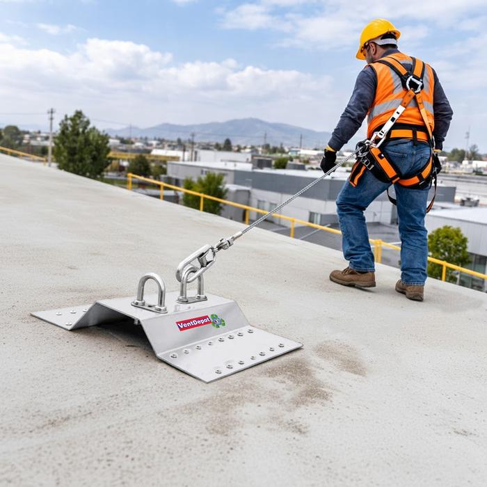| El Soporte Fijo para Seguridad Industrial SafeRoofSilverInox de VentDepot es un punto de anclaje diseñado para la conexión de equipos de protección individual contra caídas en trabajos en altura. Su función es servir como elemento estructural seguro al que puede sujetarse un sistema anticaída, permitiendo que el usuario equipado con arnés y equipo de protección personal permanezca asegurado durante labores de mantenimiento, inspección o acceso técnico en zonas con riesgo de caída. Aplicación como punto de anclaje para cuerdas de vida en áreas de actuación limitada, sirve para delimitar una zona segura de trabajo y reducir el riesgo asociado al efecto péndulo o desplazamientos involuntarios que puedan exponer al usuario a impactos laterales o caídas fuera del área protegida. Versatilidad de instalación en superficies verticales, horizontales e inclinadas, lo que posibilita su adaptación a techos, muros y estructuras resistentes, brindando un punto de conexión confiable según las condiciones del proyecto. Opción de uso como anclaje temporal o permanente, permite instalarlo para trabajos puntuales, retirarlo y reutilizarlo en otra ubicación, manteniendo la funcionalidad y seguridad del sistema. Fabricación en acero inoxidable calibre 16, proporciona alta resistencia mecánica, protección contra la corrosión y durabilidad estructural, asegurando un desempeño confiable. Diseño conforme a la norma DIN-EN 795, Clase A, respaldando su función como punto de anclaje fijo certificado dentro de sistemas de seguridad utilizados por usuarios equipados con arnés y dispositivos anticaídas. Sistema de fijación mediante barrenos en zigzag equidistantes de 3/8”, encontrados a 1/8”, garantiza una instalación firme y adecuada distribución de cargas durante su utilización. Incluye pernos en U (nudo) de acero inoxidable compatibles. Acabado en pintura acrílica color Plateado de alta visibilidad, facilita la identificación del punto de anclaje y promueve su uso correcto en trabajos de seguridad industrial en altura. Resistencia a la ruptura de hasta 3 toneladas, lo que brinda un amplio margen de seguridad y confianza para su uso en trabajos de seguridad industrial en altura. | |||