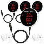 | En VentDepot contamos con una nueva línea de Medidores de Temperatura y Humedad Wifi, como el ThermHum03 con una alta tasa de eficiencia, calidad y una larga vida útil. Conectando con WiFi de 2,4 GHz (sin soporte 5G), puede monitorear remotamente el sensor de humedad inteligente. Puede establecer el límite superior/inferior de la alarma a través de la aplicación Tuya/Smart Life. El sensor de temperatura WiFi hará sonar una alarma y enviará una notificación a su teléfono cuando supere el valor preestablecido. Es compatible con Alexa y Google Assistant. Está equipado con una pantalla LCD retroiluminada de 2,9 pulgadas que le permite verificar las lecturas en cualquier situación de oscuridad. También puede apagar la luz de fondo manualmente. Se puede vincular con otros dispositivos inteligentes, por ejemplo, los aires acondicionados se encienden cuando la temperatura alcanza el valor límite. Incluye: 1 Medidor de Temperatura y Humedad, ThermHum03. 1 Sonda de Sensor de Temperatura Externa (300cm). 1Cargador con Enchufe Americano (Tipo A). | |||