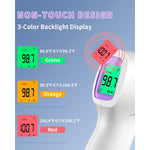 Alarma de Colores: Cuando la temperatura corporal es normal, la luz de fondo es verde rango, luz de fondo amarilla para fiebre leve y luz de fondo roja para fiebre alta con un sonido de Bip, alertando.