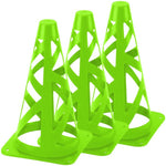 | Los AirConeGreen de VentDepot, son conos con un diseño de huecos en patrones triangulares que soportan mejor el viento que los conos cerrados, se pueden utilizar tanto en espacios cerrados como abiertos en condiciones de viento ligero y moderado. Elaborados con Plástico PE de alta calidad, tienen una superficie lisa, son livianos y resistentes, fáciles de llevar, ahorran espacio ya que son apilables, conservan su forma y color, manteniendo su vida útil por mucho más tiempo. Tiene un tamaño aproximado de 22 centímetros de altura con una base cuadrada de 13 centímetros con un orificio en cada esquina, que sirven como anclajes para cuerdas, bandas elásticas, tornillos, ganchos, etc. Cuenta con un llamativo color verde, lo que facilita su visibilidad, es una característica especialmente útil durante entrenamientos deportivos, juegos, para delimitar espacios en fábricas o bodegas, etc. Son ideales para deportes, juegos, educación física, circuitos de agilidad, en fútbol, básquetbol, sus usos profesionales incluyen señalizaciones temporales de distintas zonas, control de tránsito interno, entrenamiento de personal, organización de inventarios, delimitaciones de zonas, equipos o mantenimiento, etc. Son fáciles de limpiar, solo requieren de un trapo húmedo o enjuagar con agua, para utilizar nuevamente en óptimas condiciones. | |||