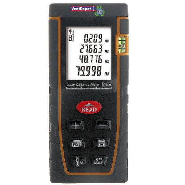 | El Medidor por láser RangeFinder Ventdepot cuenta con 3 tipos demedición como son Área, Volumen y Teorema de Pitágoras. Cuenta con una alta precisión ± 0.2 y un alto rango de medición (80 m). Cuenta con función de Suma y Resta además de guardar hasta 30 resultados y poder borrarlos. Cuenta con luz de fondo y apagado automático. Pantalla digital de gran tamaño la cual puede mostrar hasta 4 líneas de medición de datos. Batería de 2 pilas “AAA”. Nivel del Láser clase II. Contiene 3 opciones de unidad las cuales sin metros, pies y pulgadas. Cuenta con un nivelador de Burbuja de aire. Fácil de medir solo apunta con el láser y mostrará la medición Protección IP54 para polvo y salpicaduras. | |||