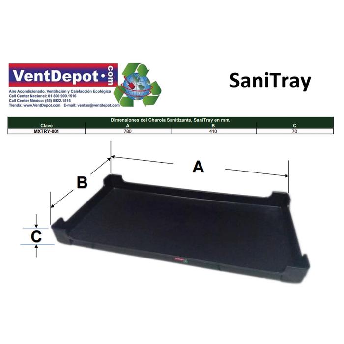 | El SaniTray, es una charola anti-derrame para la espuma absorbente no incluida ya que se utiliza para retener solución antiviral, antibacterial y fungicida de blanqueador y cloro. Con capacidad recomendada para contener 1.5 litros de solución desinfectante. Esparce la solución sobre todo el tapete, de manera que este empapado. Es un recipiente donde agregara una solución desinfectante o sanitizante que mata los gérmenes, bacterias o patógenos del calzado, las suelas de los zapatos y botas. Estos se colocan en las entradas de cuartos, entradas principales o áreas limpias para mantener los interiores libres de gérmenes. Protege a tu familia, tan fácil como pisarlo a la hora de ingresar al hogar. | |||