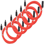 Cada cable de extensión solar incluye un conector MC4 (Multi-Contact of 4 millimeters), positivo (macho) y un conector MC4 (Multi-Contact of 4 millimeters) negativo (hembra) ya ponchado en un extremo de cada cable, se utilizan en aplicaciones paralelas. El pasador de metal está hecho de cobre mecanizado de alta calidad y una punta sellada lo que te permite conectar múltiples cables juntos para una mayor longitud.