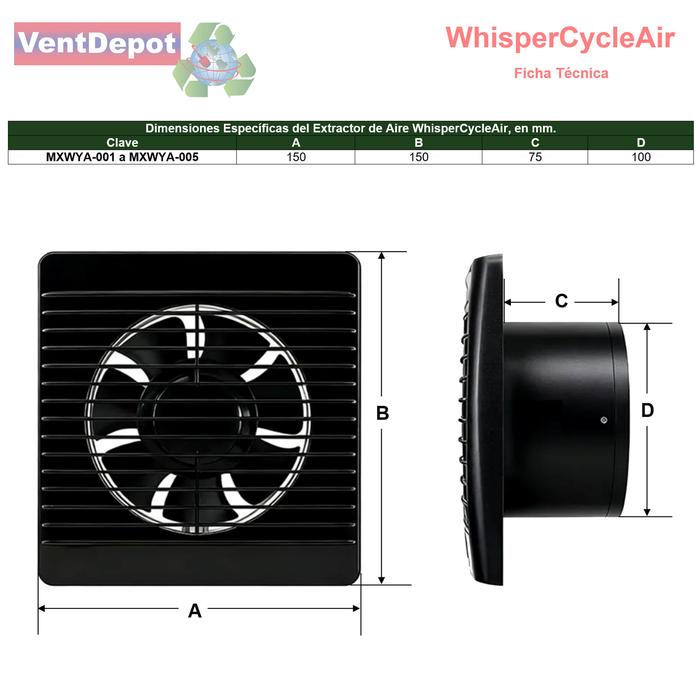 | Características Generales del Extractor de Aire, WhisperCycleAir. | |||