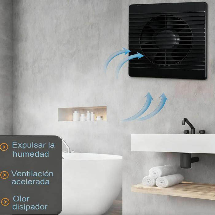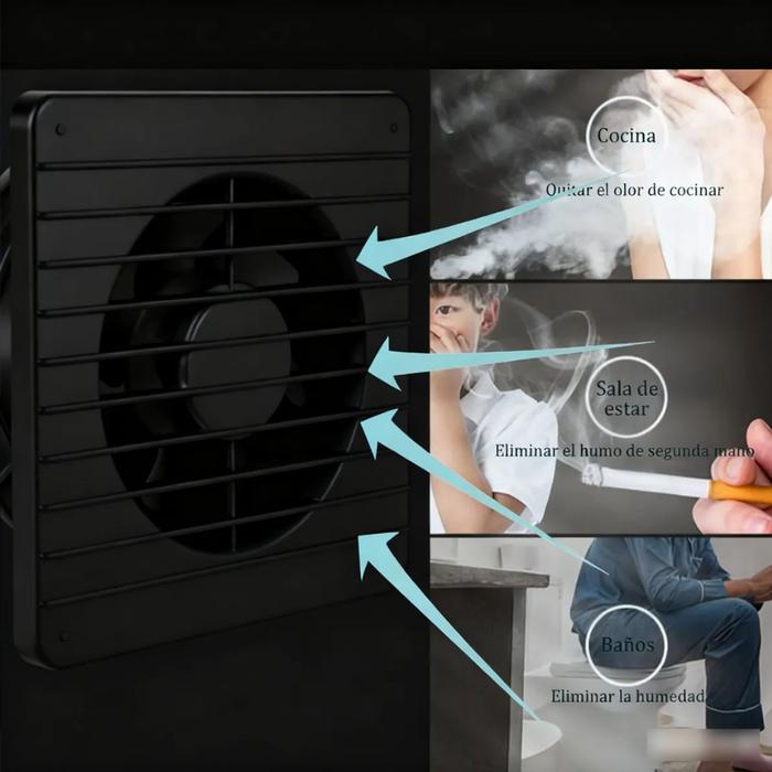 | El extractor de Aire WhisperCycleAir ofrece un rendimiento superior gracias a su diseño de precisión, que incorpora una rejilla frontal capaz de distribuir el flujo de aire de manera uniforme para renovar ambientes y eliminar rápidamente olores, humo y humedad. Su instalación es sencilla y versátil, ya que puede montarse tanto en paredes como en ventanas utilizando tornillos o adhesivo, mientras que su mantenimiento resulta práctico al permitir desmontar el motor para una limpieza profunda que prolonga su vida útil. Cuenta con un motor de cobre silencioso y resistente, equipado con lubricación permanente, cojinete de manguito duradero, protección contra sobrecalentamiento y una carcasa de ABS anticorrosión que garantiza estabilidad, seguridad y un funcionamiento de bajo ruido. Su capacidad de 350 m³/h proporciona una ventilación acelerada con un consumo energético mínimo de solo 18W, permitiendo mantener los espacios frescos sin incrementar el gasto eléctrico. Además, integra una válvula de retención automática que evita el retorno de olores o aire exterior, asegurando una atmósfera limpia en todo momento. WhisperCycleAir destaca por su eficiencia, durabilidad y capacidad para mejorar la calidad del aire, al mismo tiempo que previene humedad, moho y malos olores. Brinda un desempeño estable y confiable en cualquier lugar donde se requiera ventilación constante y silenciosa. | |||