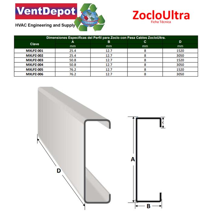 | El Perfil para Zoclo con Pasa Cables, ZocloUltra cuenta con 1 año de garantía sujeto a cláusulas de VentDepot. | |||